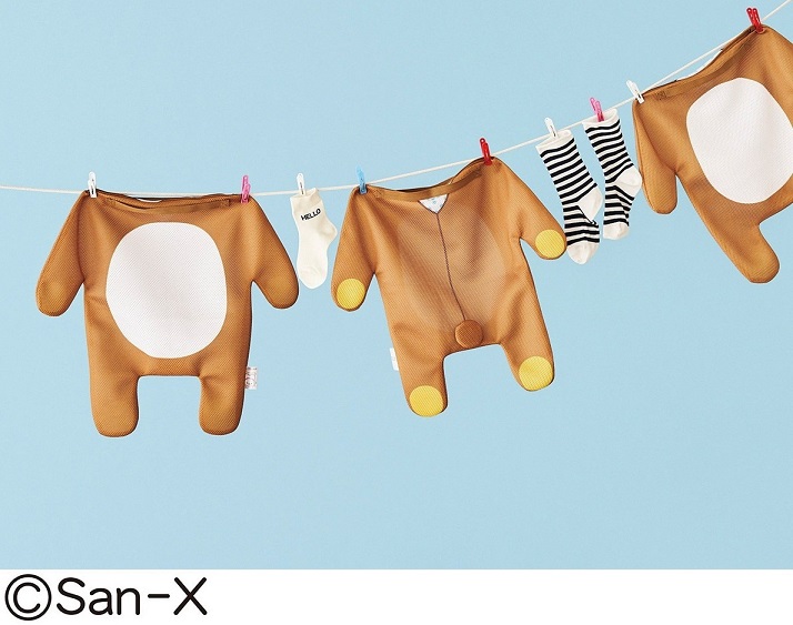 が販売するリラックマの洗濯ネット「リラックマ だらりんのほほん♪ 着ぐるみの洗濯ネットの会」です。リラックマが脱いだ着ぐるみを、洗濯ネットで再現。まるでわが家にリラックマが居候中のような、洗濯物と一緒に風にたなびく光景を楽しめます。