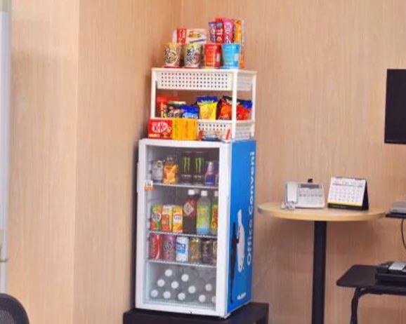 わざわざ外に出かけずに、社内で小腹を満たしたい時や、忙しい日のランチにカップ麺やお菓子類がすぐに手に入るから便利だよ♫