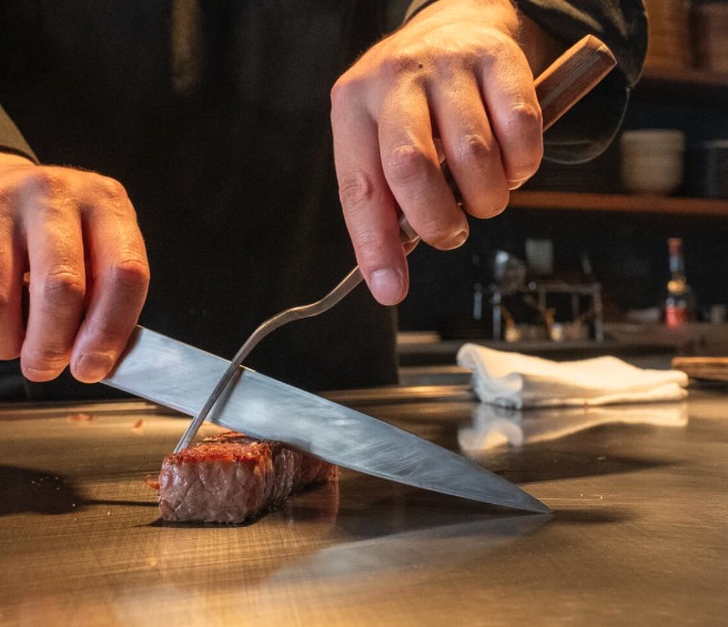 目の前で調理される鉄板焼きが魅力的( *`ω´)