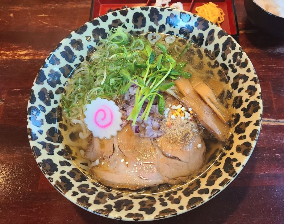 ヒョウ柄どんぶりのラーメン屋さん