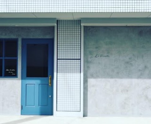 青いドアと白いモルタルの壁がオシャレなんだ☆彡
