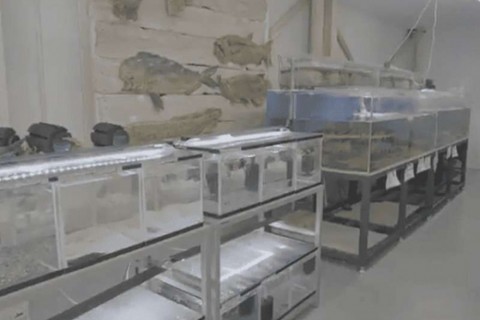 店内にはたくさんの水槽で