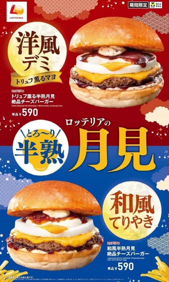 ロッテリアのとろ~り半熟月見フェア第2弾「トリュフ薫る半熟月見 絶品チーズバーガー」9月17発売! (参照記事: えん食べ)