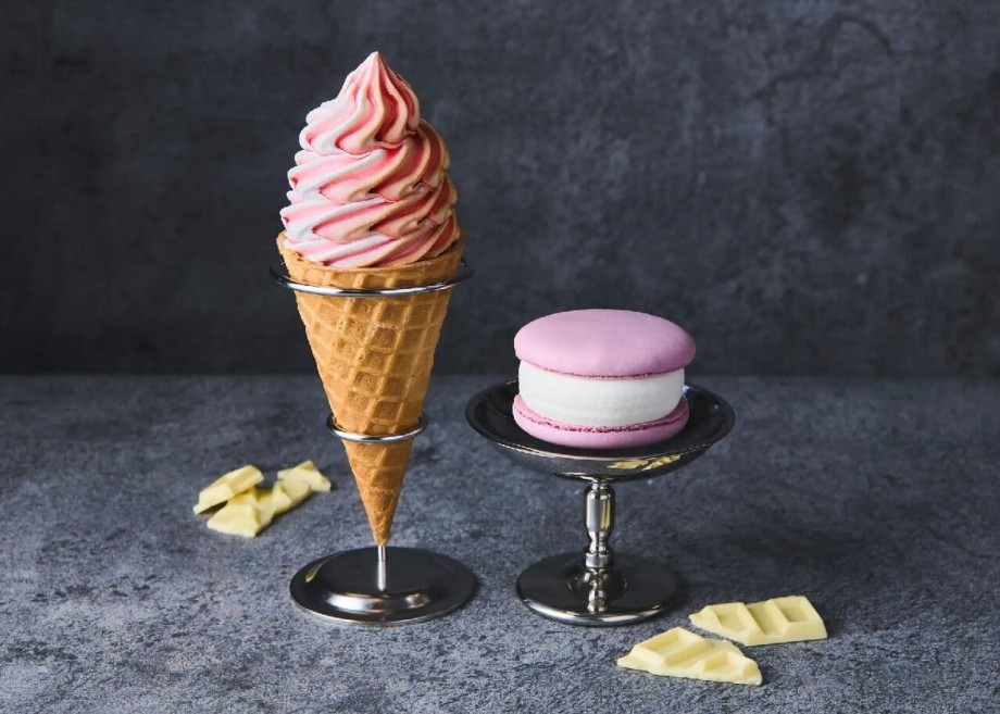 カカオ分の高いチョコを使ったビターチョコレートアイス、フルーツの酸味と相性の良いホワイトチョコレートアイス、ストロベリーソース、トウモロコシ粉入りコーンを組み合わせた商品。