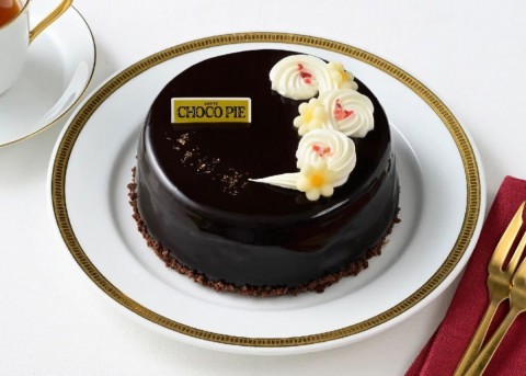 銀座コージーコーナーの生ケーキ取扱店で、ロッテと共同開発した「ケーキになったチョコパイ(4号)」が1月31日~2月28日頃の期間限定で販売されている。直径約12cm、価格は2,700円(税込)。