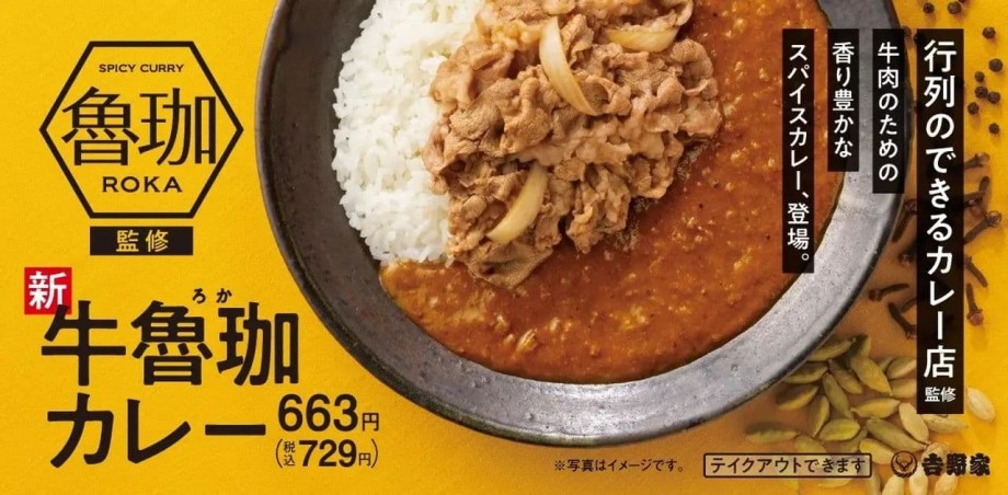吉野家「牛魯珈カレー」「肉だく牛魯珈カレー」超人気店“SPICY CURRY 魯珈”監修!牛煮肉に合う香り高いスパイスカレー (参照記事: えん食べ)