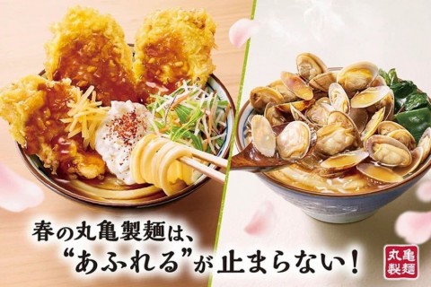 全国の丸亀製麺で「甘辛しょうがダレのはみ出る豚天ぶっかけうどん」が、全国のロードサイド店を中心とした店舗では「山盛りあさりうどん」が3月4日から4月下旬まで販売されている。持ち帰り可能。