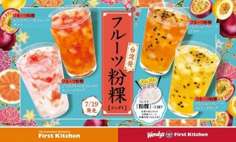 ウェンディーズ・ジャパン及び、ファーストキッチンは、新感覚ドリンク「フルーツ粉粿(フングイ)」4種類を、7月19日から全店で発売する。各590円。
