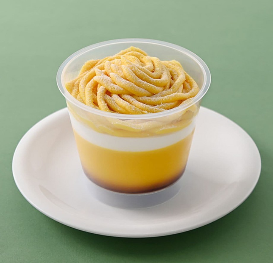 ほろ苦い自家製カラメルとねっとり濃厚なかぼちゃプリンの上に、たっぷりのかぼちゃクリームをトッピング。298円。