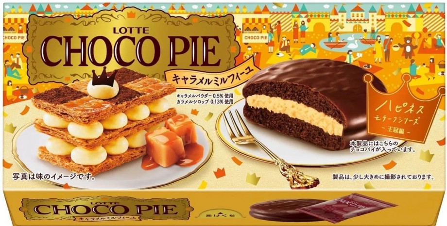 ロッテ「チョコパイ<キャラメルミルフィーユ>」ハピネスモチーフチョコパイ第3弾!王冠が幸せのモチーフ (参照記事: えん食べ)