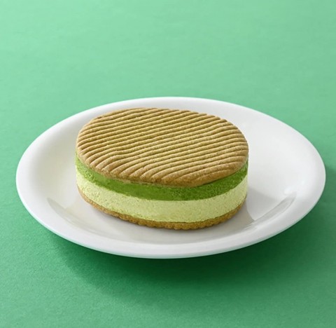 「上林春松本店」監修商品。中にはとろーり抹茶ソースが入っており、なめらかな抹茶クリームと濃厚な抹茶生チョコを抹茶ビスケットでサンド。290円。
