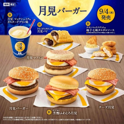 マクドナルドで、「月見ファミリー」10商品が9月4日から10月中旬まで販売される。