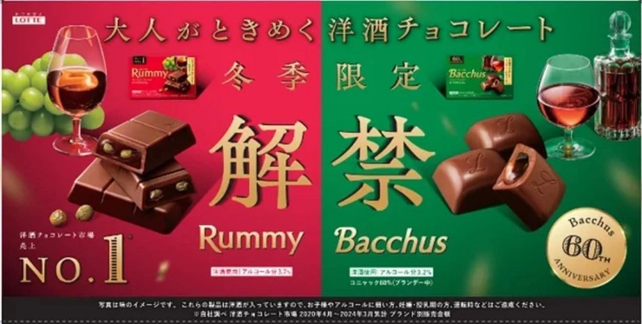 ロッテから、大人の洋酒チョコレート「ラミー」と発売60周年の「バッカス」が冬季限定で10月8日より販売されている。バッカスの60周年を記念して「カスタードケーキ<バッカス仕立て>個売り」も発売。
