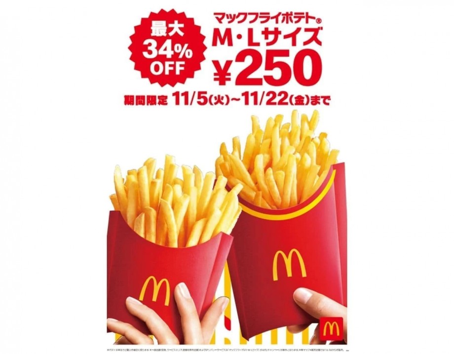 マクドナルド「マックフライポテト250円キャンペーン」最大34%OFF!これまでより長い18日間実施 (参照記事: えん食べ)