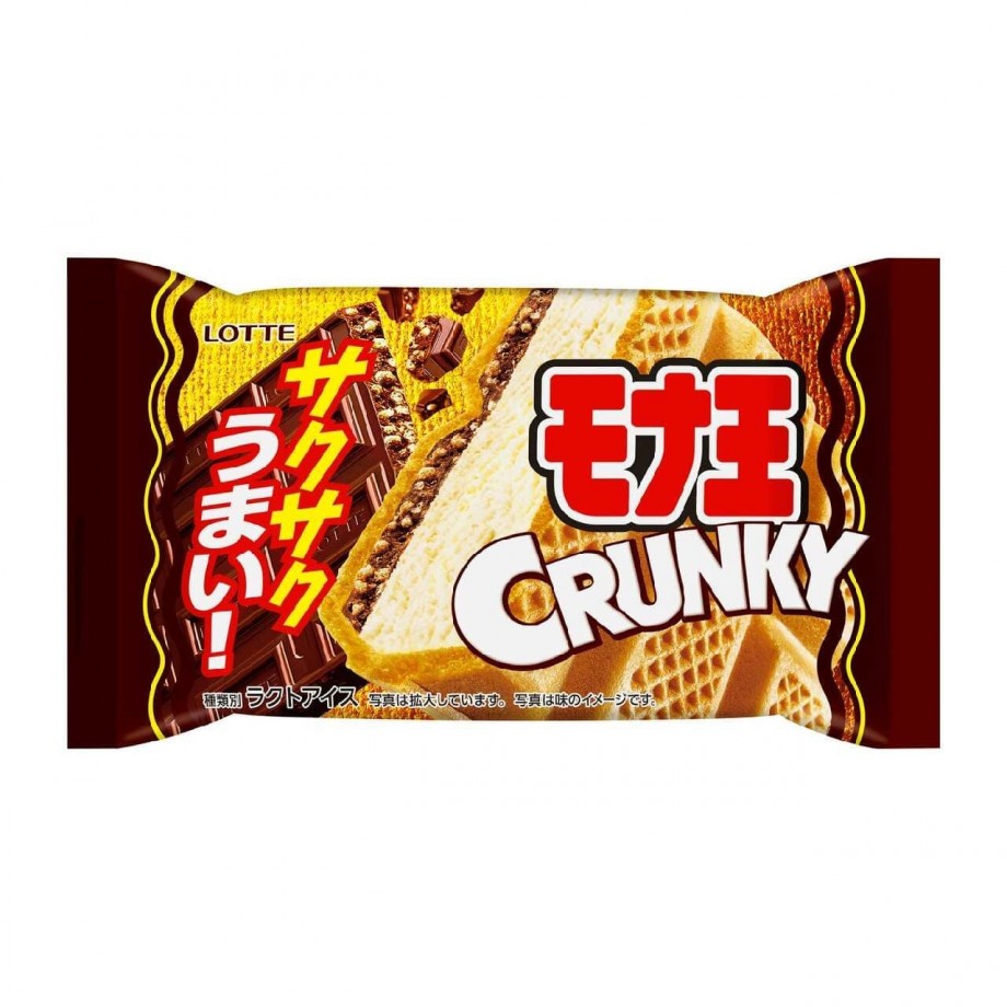 バニラアイスとモルトパフ入りチョコレートが一体となり、口どけの良いモナカ皮との絶妙なバランスが楽しめる。従来の「モナ王」の良さを保持しながら、クランキーのサクサク感をプラスしている。