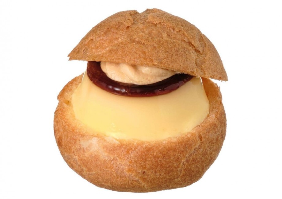 シュー生地にまるっと一つプリンを挟んだ、食べ応えのあるプリンシュー。302.40円(税込)。
