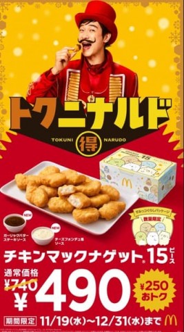 今年の冬は、定番人気のチキンマックナゲット15ピースが特別価格で提供される「トクニナルド」が登場。11月19日から販売されている。