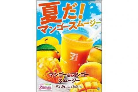 セブン-イレブン各店で、人気の「セブンカフェ スムージー」から、2種類のマンゴーを使用した濃厚な風味が特長の「マンゴー&マンゴー スムージー」が7月16日から順次販売されている。360.72円(税込)。