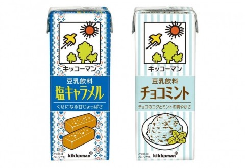 キッコーマンソイフーズから、「キッコーマン 豆乳飲料 塩キャラメル」と「キッコーマン 豆乳飲料 チョコミント」が5月26日から9月末までの期間限定で販売される。200ml紙パック、各110円(税別)。