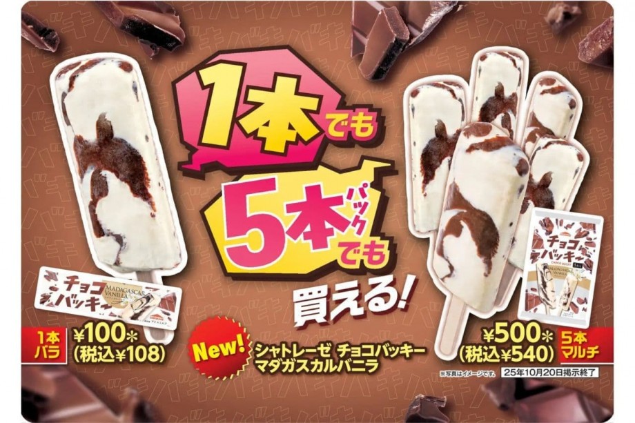 セブン-イレブン限定で、シャトレーゼの人気アイスバー「チョコバッキー」が登場。首都圏を除く全国で10月7日から、首都圏では10月28日から販売されている。