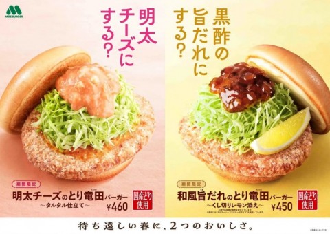 モスバーガー「明太チーズのとり竜田(たつた)バーガー ~タルタル仕立て~」1月29日新発売!「和風旨(うま)だれのとり竜田(たつた)バーガー ~くし切りレモン添え~」はリニューアル (参照記事: えん食べ)