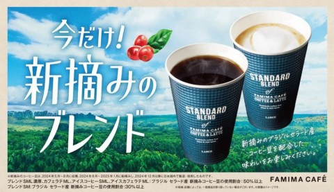ファミリーマートで、新摘みのブラジル セラード産最高等級コーヒー豆を配合した春限定「新摘みのブレンド」が4月1日から4月14日まで販売されている。