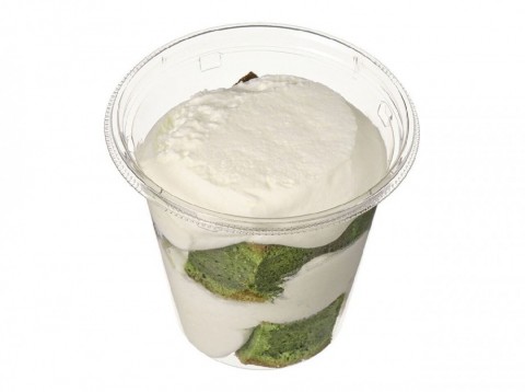 宇治抹茶香るシフォン ケーキ、ホイップ クリーム、宇治抹茶ソースを詰め込んだボリュームのあるカップスイーツ。421.20円(税込)。