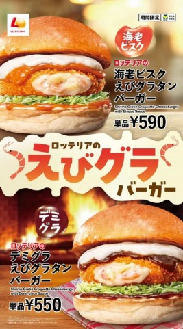 ロッテリア えびグラバーガーフェア「海老ビスク えびグラタンバーガー」「デミグラ えびグラタンバーガー」期間限定! (参照記事: えん食べ)