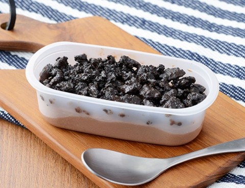 ローストした香ばしいくるみを閉じ込めた、キャラメル風味のもっちりとしたデザート。228円。