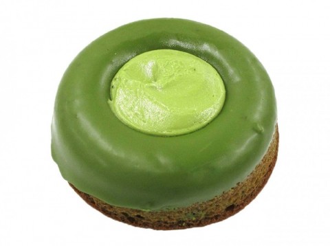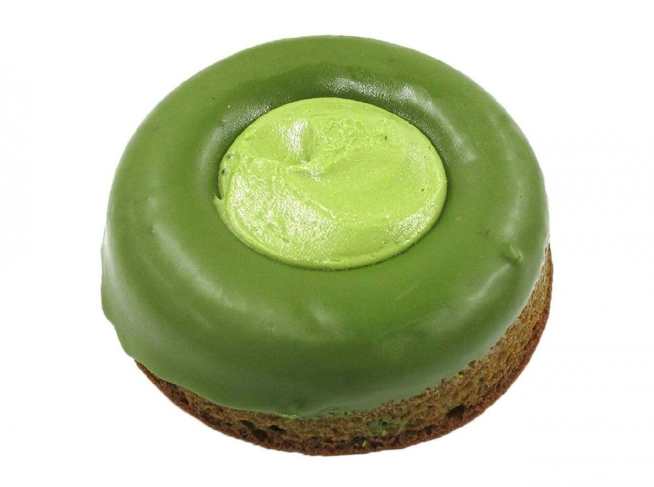 抹茶を生地に練り込み、フライ後にシロップをかけ、抹茶コーチングで仕上げたドーナツ。