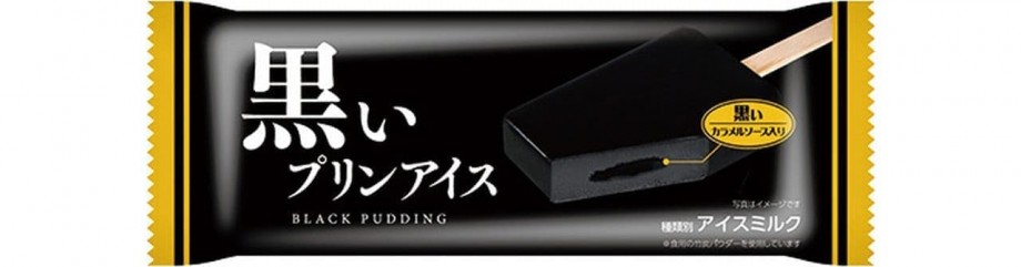 竹炭パウダーを使用した黒いプリンアイスの中に、黒いカラメルソース入り。プリンの風味とソースのとろっとした食感を楽しめる。227円。