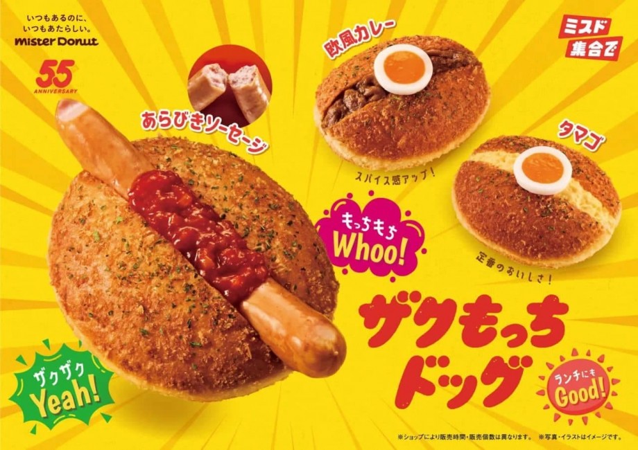 ミスタードーナツ新作「ザクもっちドッグ あらびきソーセージ」「ザクもっちドッグ 欧風カレー」軽食にぴったりな食事系ドーナツ! (参照記事: えん食べ)