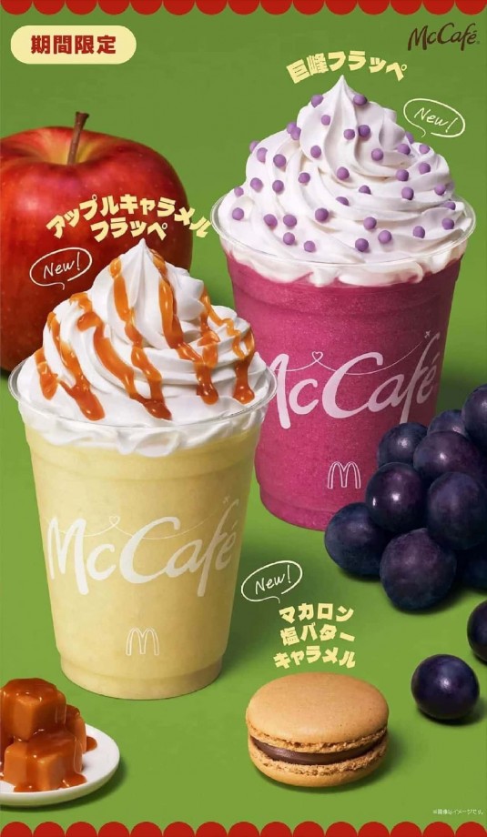 マクドナルド「巨峰フラッペ」「アップルキャラメルフラッペ」「マカロン 塩バターキャラメル」9月25日発売! (参照記事: えん食べ)