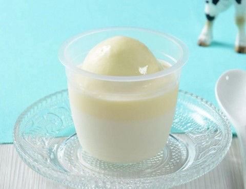 ミルクプリンにホイップクリームを重ね、練乳とカスタード等を合わせたソースをかけました。279円(税込)。