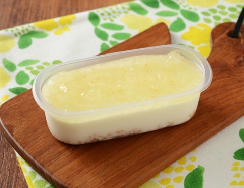なめらかなレアチーズケーキに、爽やかなレモンジュレを重ね、下には食感のアクセントとしてクランチを合わせた。181円。