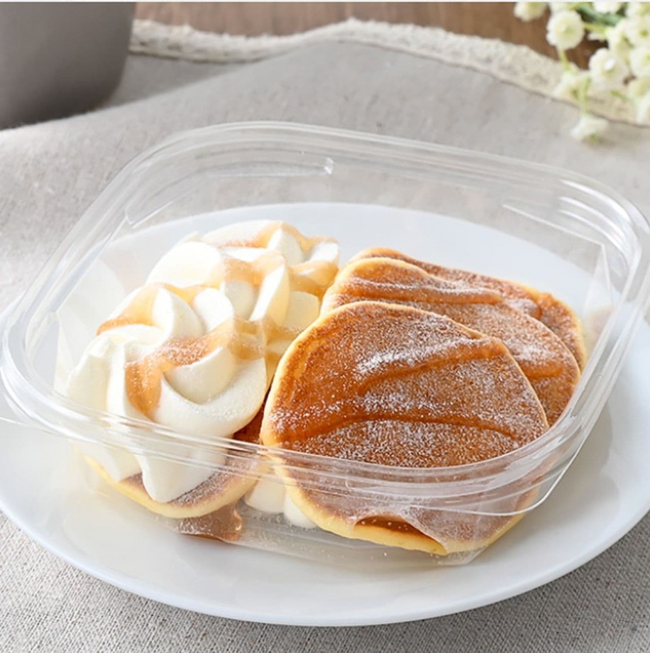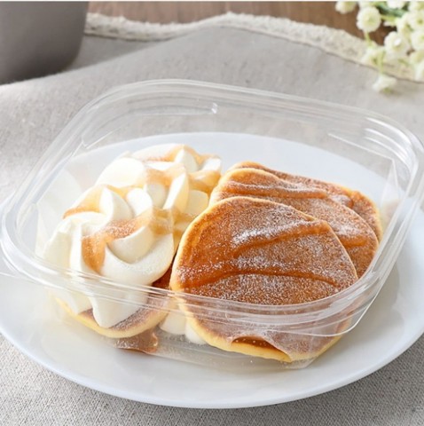 ふんわり&もっちり食感の小さめサイズのパンケーキに、クリームやソースをトッピング。320円(税込)。