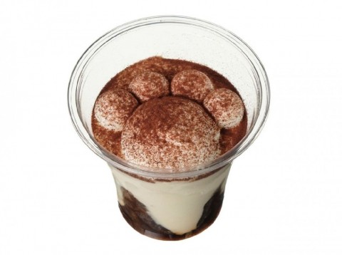 なめらかなティラミスムースと香り高いコーヒーを味わえるスポンジで仕立てたティラミスに、猫の肉球をイメージしたティラミスホイップを絞った。299.16円。