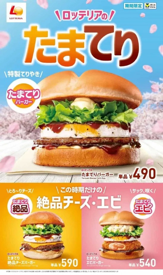 ロッテリア「たまてりバーガー」「たまてり絶品チーズバーガー」「たまてりエビバーガー」ぷるぷるたまご×特製てりやきソース! (参照記事: えん食べ)