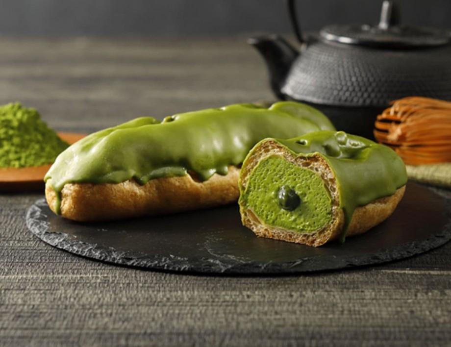 香ばしい生地に、宇治抹茶を使用した抹茶クリームと抹茶ソースを入れたエクレア。