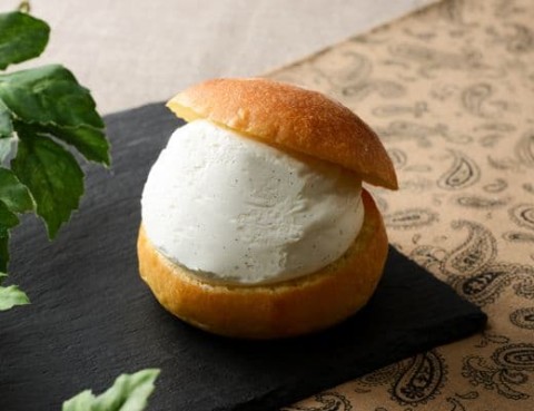 国産小麦の小麦粉をブレンドした、ほろほろふんわりとしたブリオッシュ生地で、北海道産生クリームやマスカルポーネを加えたクリームをサンド。中のヘーゼルナッツチョコが味わいのアクセント。