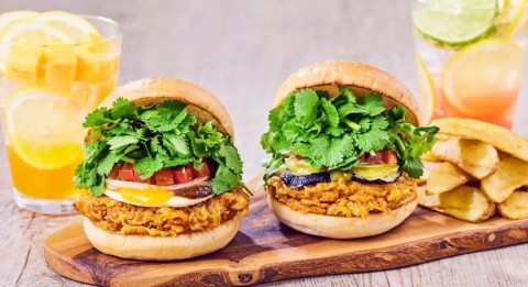 フレッシュネスバーガーで、パクチータイフェアとして「パクチーチキンバーガー ガパオ」、「パクチーチキンバーガー グリーンカレー」、「トムヤムクンポテト」が4月24日~6月4日の期間限定で販売される。