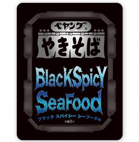 真っ黒なパッケージ「ペヤング ブラックスパイシーやきそば シーフード味」!--魚介のうまみたっぷり