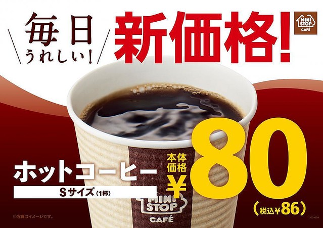 ミニストップさんに感謝! 「ホットコーヒー」が1杯86円の新価格になるよ~
