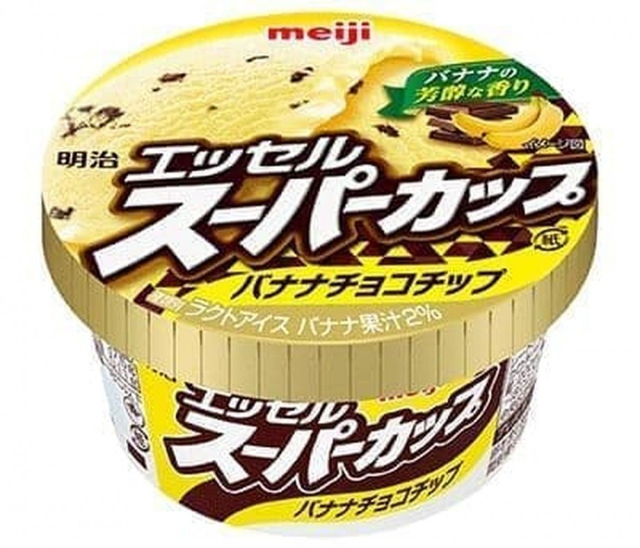 「明治 エッセル スーパーカップ バナナチョコチップ」!-- バナナ味アイス×パリパリのチョコチップ