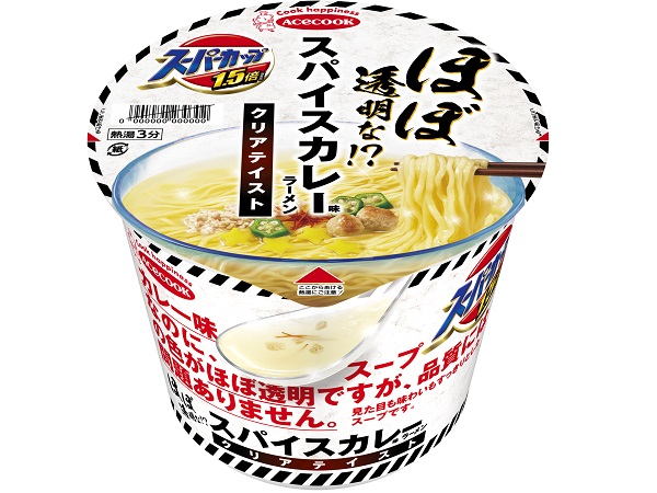 エースコックから「スーパーカップ1.5倍 クリアテイスト ほぼ透明な!?スパイスカレー味ラーメン」が7月29日より発売される。220円(税抜)。全国のスーパー、コンビニなどで販売。
