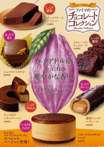 ファミリーマートで「ファミマのチョコレートコレクション」第2弾が1月31日から実施されている。コレクションでは、エクアドル産のカカオの華やかな香りが楽しめる商品6種類を販売。