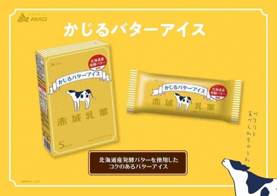 「かじるバターアイス」は、バターのコク深い味わいと特有の風味を再現するために、北海道産発酵バターを使用したアイス商品。