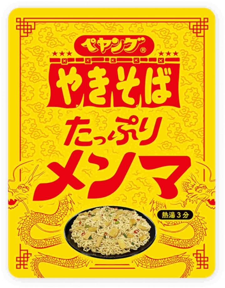 「ペヤング たっぷりメンマ やきそば」食感の良いメンマをたっぷり&中華そばイメージの醤油ベースソース