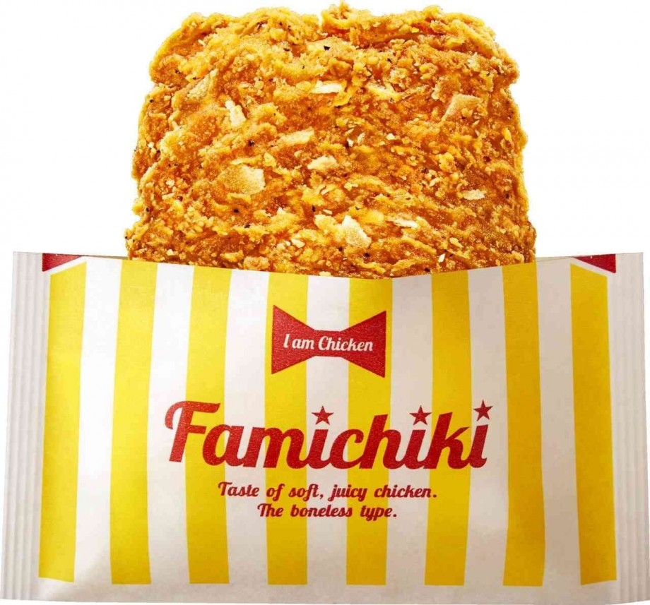 ファミチキ(コンソメWパンチ味)ファミマ「ファミチキ(コンソメWパンチ味)」「厚切りポテトチップス ファミチキ味」カルビーとコラボ! (参考記事: えん食べ)