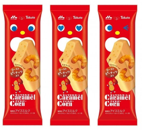森永乳業から、東ハトの「キャラメルコーン」とコラボレートした「キャラメルコーンアイスバー」が数量限定発売される。150円(税別)。